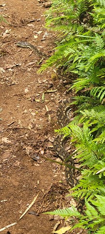 Spy carpet pythons basking in the sun, or pink-tongued lizards carefully camouflaging themselves in the leaf litter. Listen for the unusual cat-like mewing cry of the catbird in the valley below.