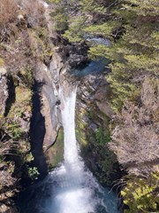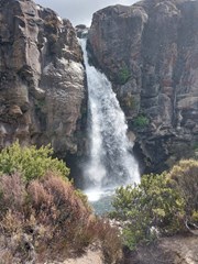 From the forest edge the track passes over the Wairere Stream with impressive views of a small narrow gorge. Continuing on up the track, Taranaki Falls comes into view tumbling 20 metres over the edge of a large andesite lava flow which erupted from Mt Ruapehu 15,000 years ago.