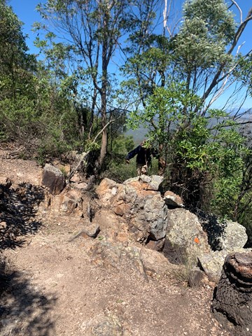 skirting around the base of the Rocky Knoll. Be weary that this has some steep sections. To avoid slipping down the slope It is better to go via the Goolman Lookout track then return via Rocky Knoll.